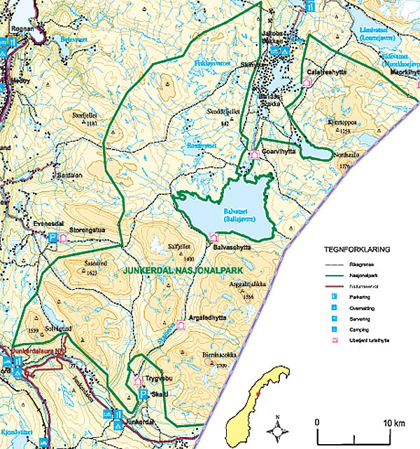 Über die E6 und den RV77 ist die Anfahrt mit dem Auto kein Problem. Am RV77 findet ihr auch das Junkerdal Turistsenter. Im Nationalpark gibt es mehrere ausgeschilderte DNT-Wanderwege und Hütten. Die bekannteste Hütte ist die Argaladhytta im Skaitidalen, die als die gemütlichste in ganz Norwegen gilt. Auch Angeln und die Elchjagd sind möglich. Für beides braucht ihr hier aber eine Genehmigung.